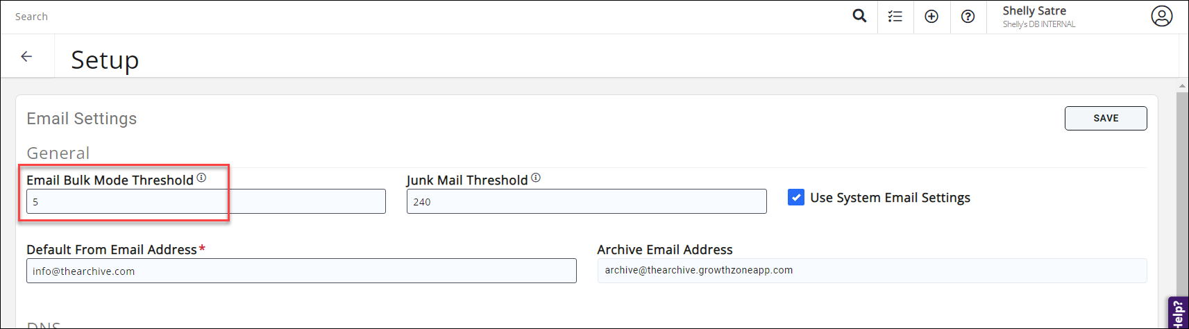 The E-mail Bulk Mode Threshold determines at what point an email that is addressed to multiple recipients will be sent using bulk email handling. For example, when the bulk mode threshold is set to 30, if the recipient count in the TO field is greater than 30, bulk email handling will occur on that email.