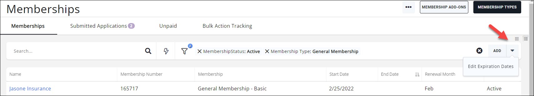 NOTE: Expiration dates may also be updated when performing a membership upgrade, downgrade or adjustment. |