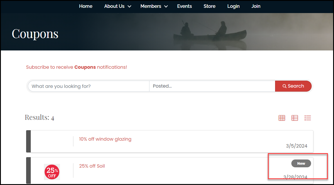 Publish Start - Enter the date the coupon is published to your web-site. If the publish date is less than five days old, a tag called New will show on the content.