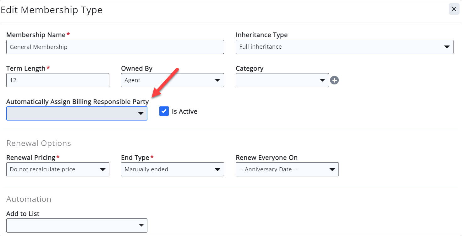 When you set up your membership types, you will have the option to choose Automatically Assign Billing Responsible Party. You will choose the appropriate role (either Broker or Office Manager).