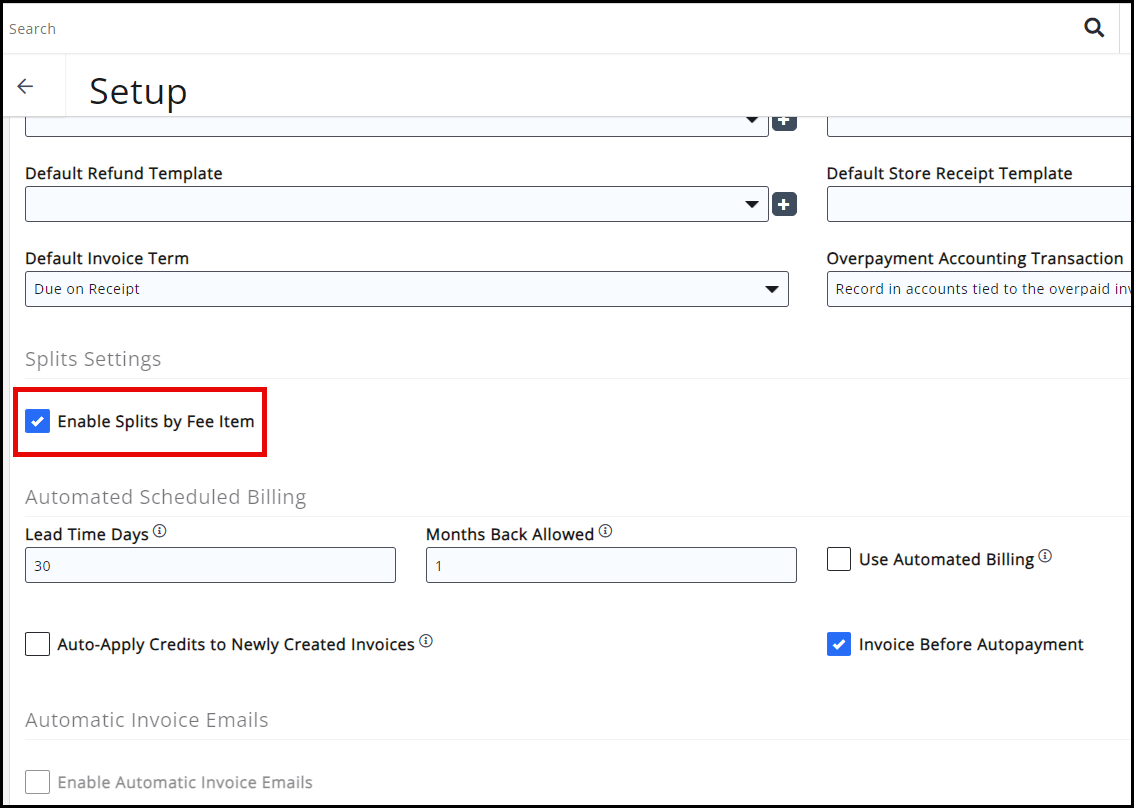 2. In General Settings, select the box to Enable Splits by Fee Item. This will open the Payment Gateway selection for Fee Items. Click Save.