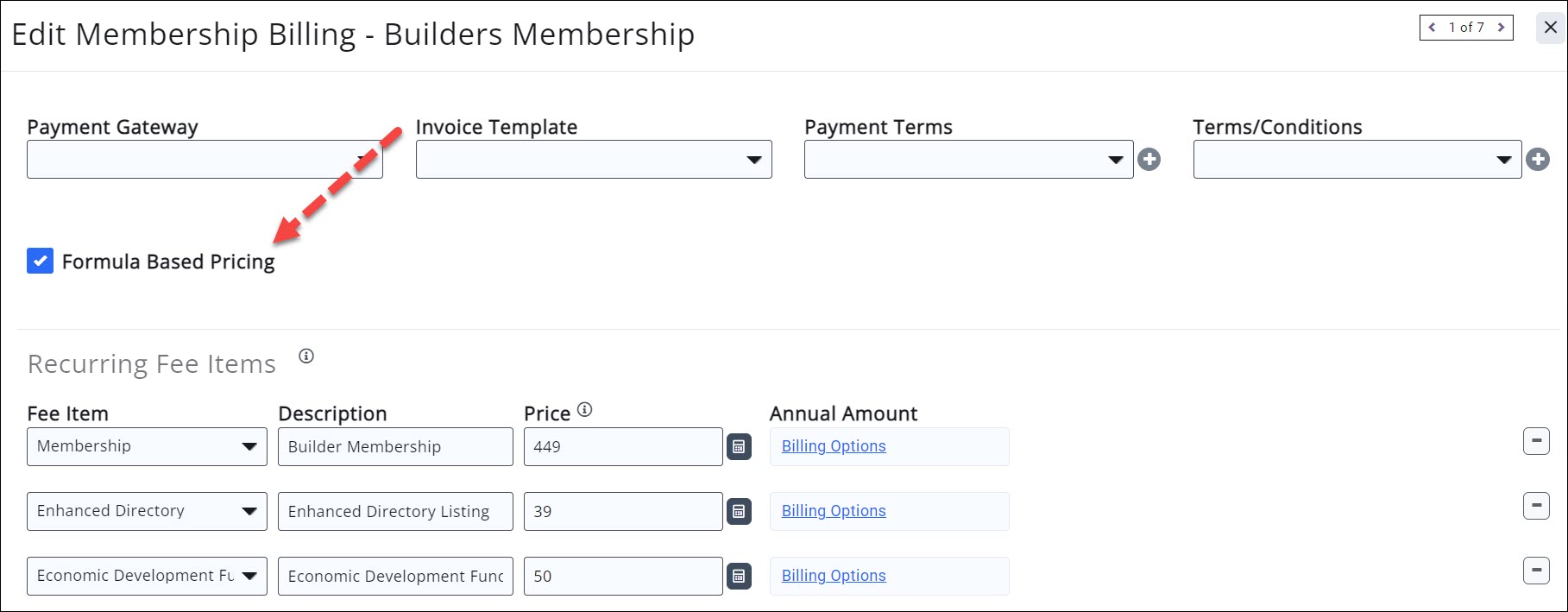 - Click the Formula Based Pricing check-box. See Add Pricing to a Membership for information on additional fields.