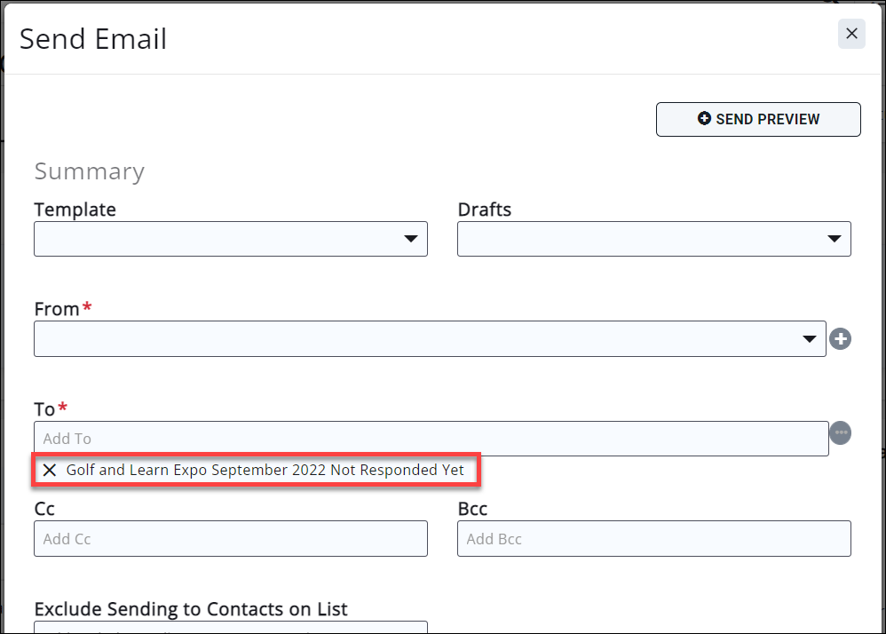 - The Send Email window will open. The software will look to your previously sent email, and create a group of those that have "Not Responded Yet", as shown in the image below.