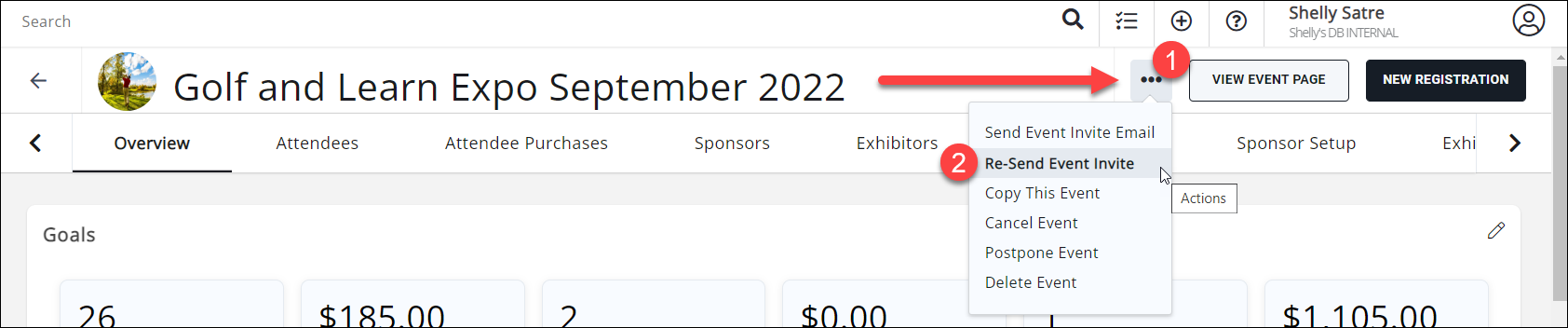 - Click the three dots in the bar to the right of the event name and select "Re-Send Event Invite".