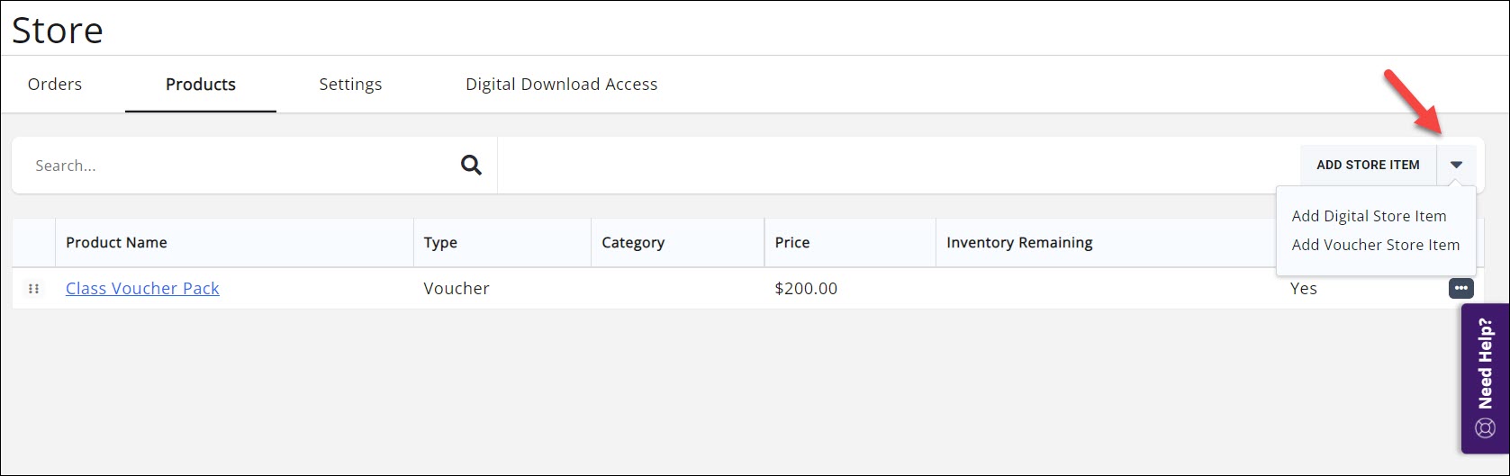 icon next to Add Store Item and select Add Voucher Store Item.