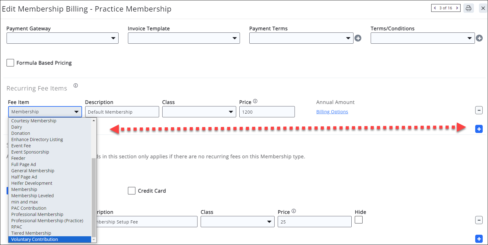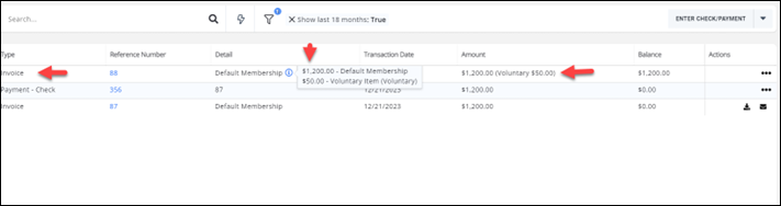 Voluntary fee items may be added to your membership recurring billing line items. With a few added steps, you’ll not only be able to collect voluntary fees on new memberships, but also provide options for existing members to contribute to your organization in more ways than just one. A voluntary fee may be displayed on an invoice, and the member may choose to pay or not pay this fee.