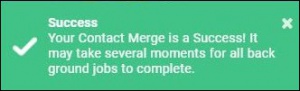 Background jobs need to process the merge, so the actual merge may take a few minutes. The message shown below will be displayed in the upper right-hand corner of the screen.