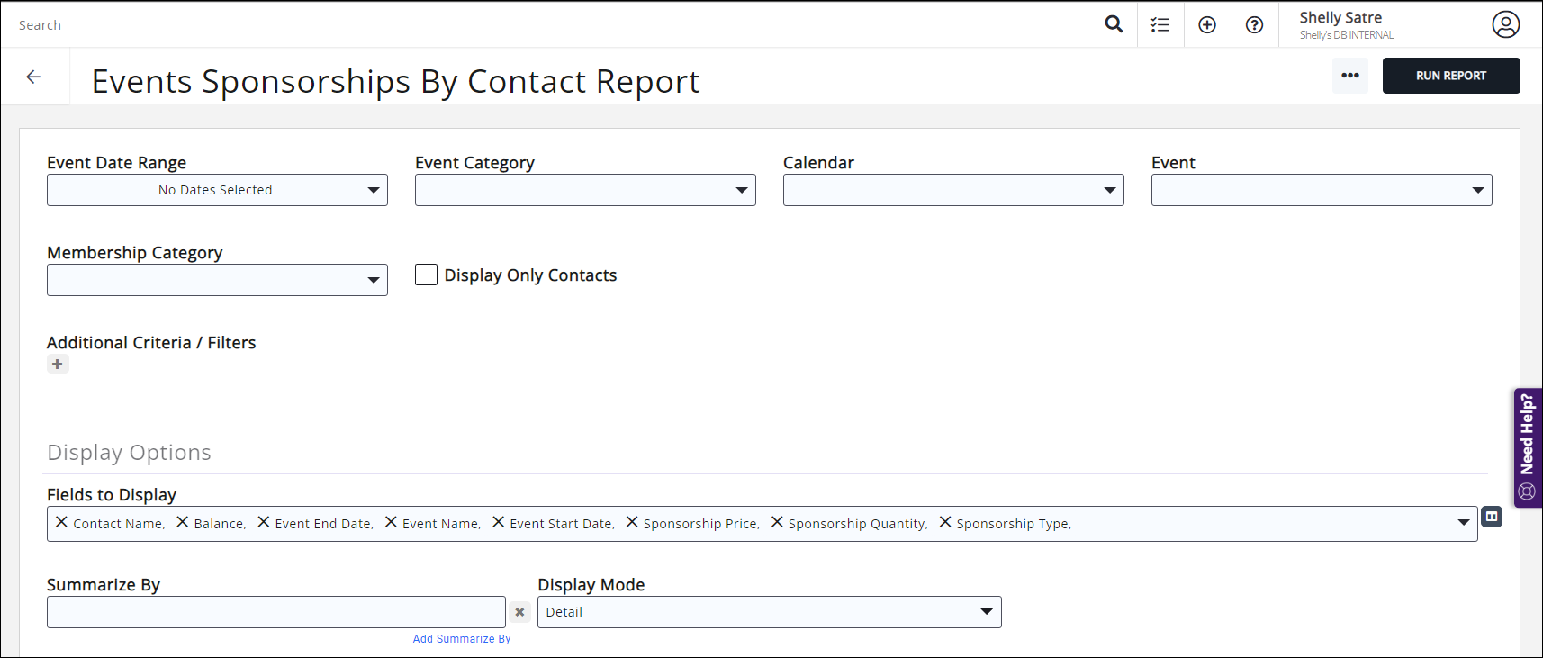 - Select Event Sponsorships by Contact Report.