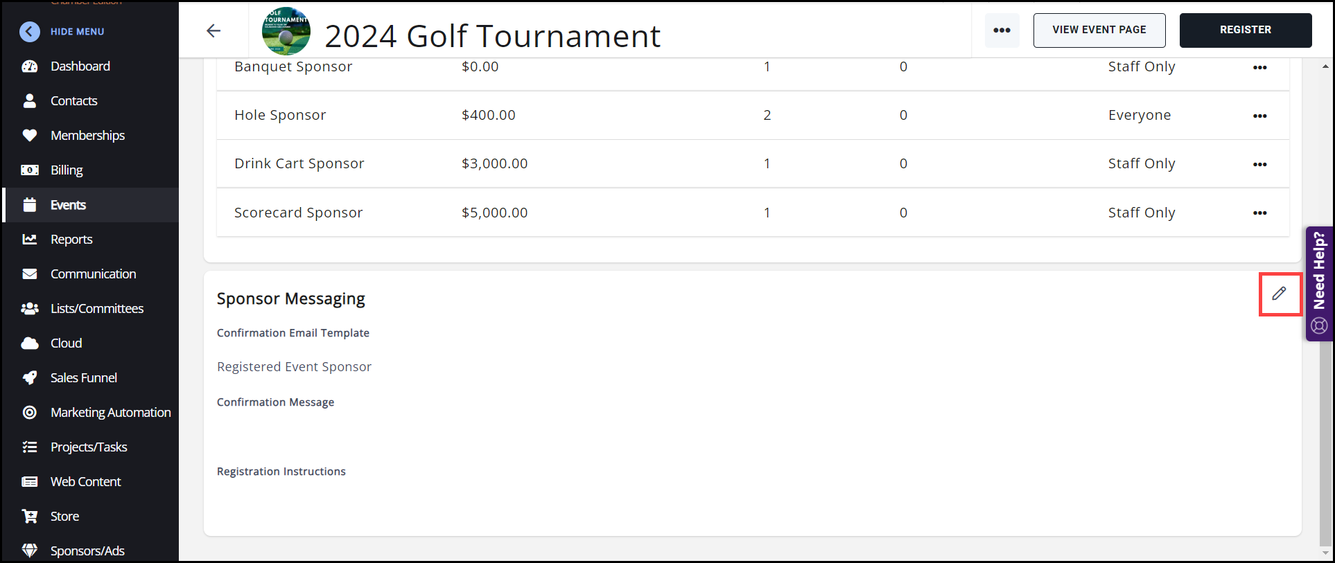 - In your event, navigate to the Sponsor Setup tab.