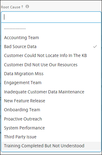 When closing the ticket, there will be two required fields - Component and Root Cause. The Component is similar to module or area within the platform the ticket subject is related to. The Root Cause is the outcome of the ticket or why the ticket came to us. Definitions for the Root Cause field are below along with examples of the Component and Root Cause fields.