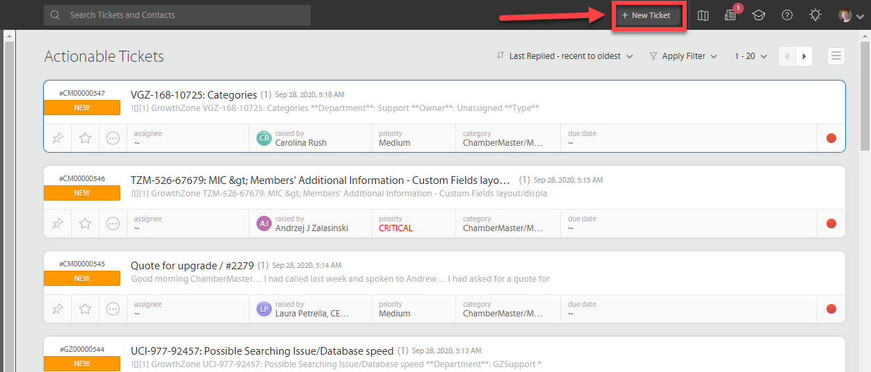 Click on +New Ticket