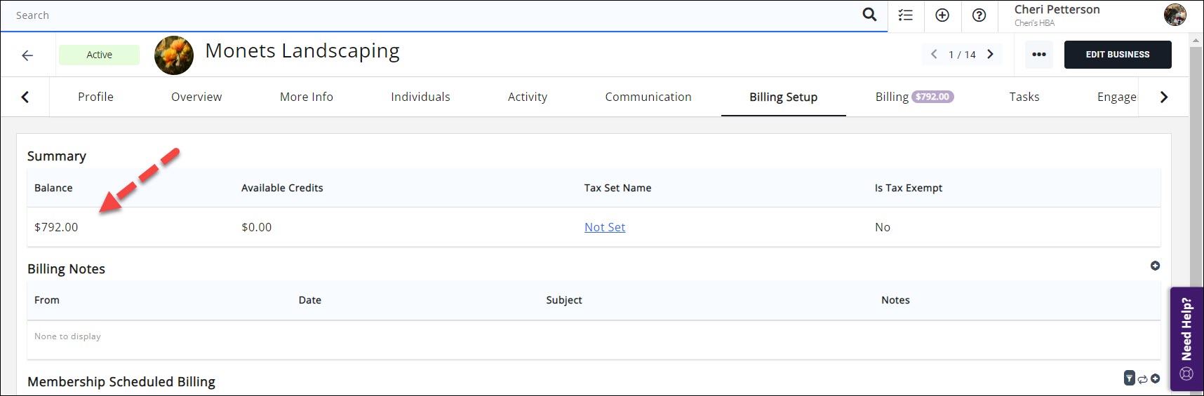 You can view a contact's balance on the Billing tab. Additionally, if the contact has a balance, this will be displayed on the tab itself.