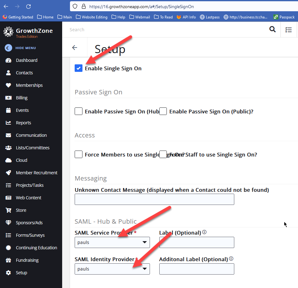 Under 'Provider Configuration', in the 'Service Provider Name' field, enter 'spGrowthZoneXYZ' where XYZ is the abbreviations of the customer. Some examples are: