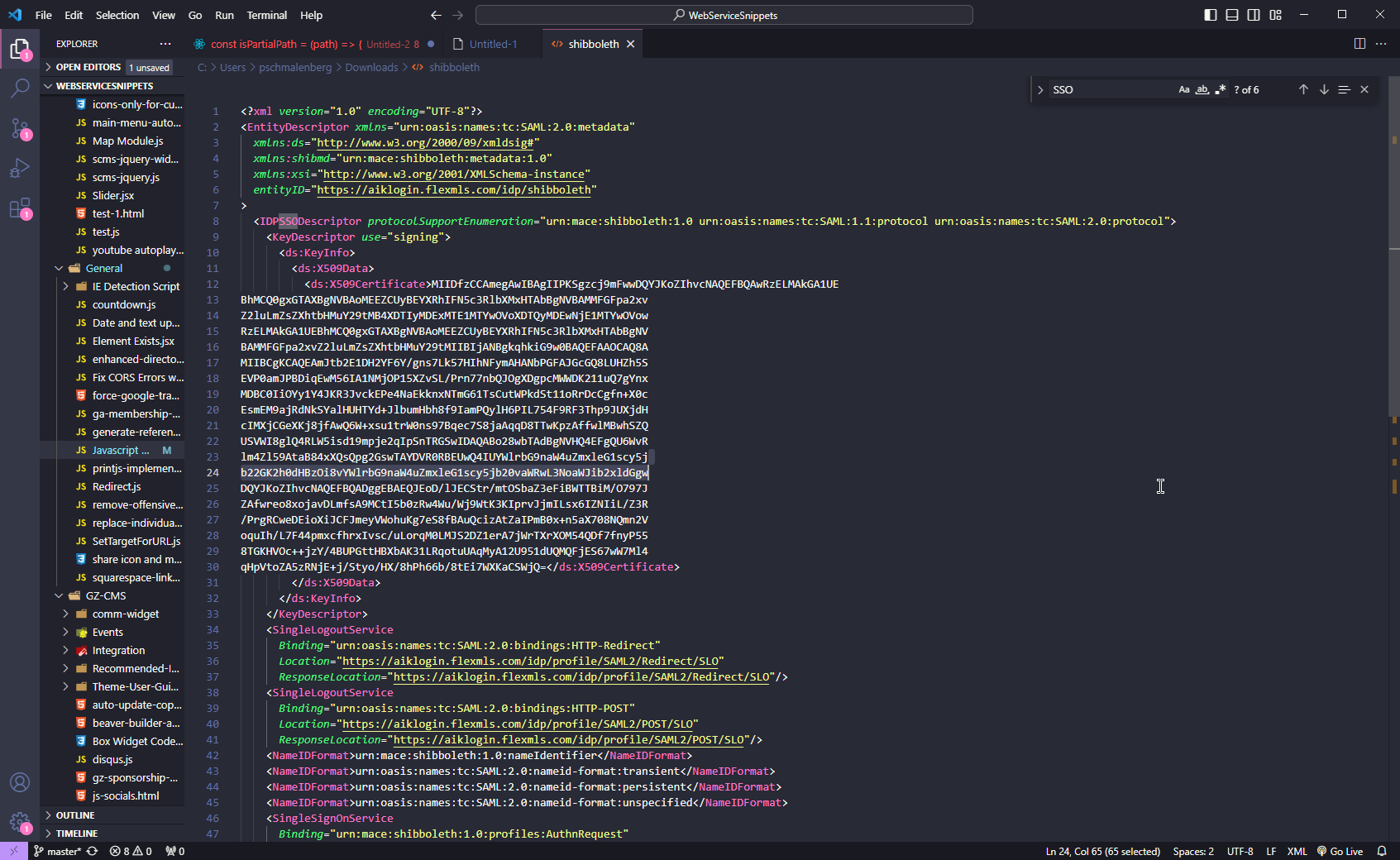 To pull the next information you need to open the Service ProviderMetadata.xml using a text editor to get the information from required from the file, I use Visual Studio code for this but any text editor should work