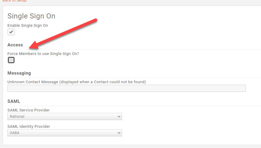 T1 > Admin > Access Customer's Tenant > Setup > Single Sign On > Check Enable Single Sign On