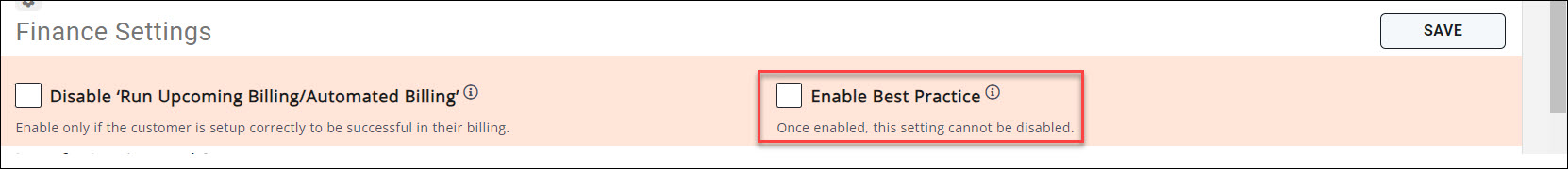 - Click General Settings in the Finance section. If Best Practice mode has not previously been enabled you will see the option to enable.