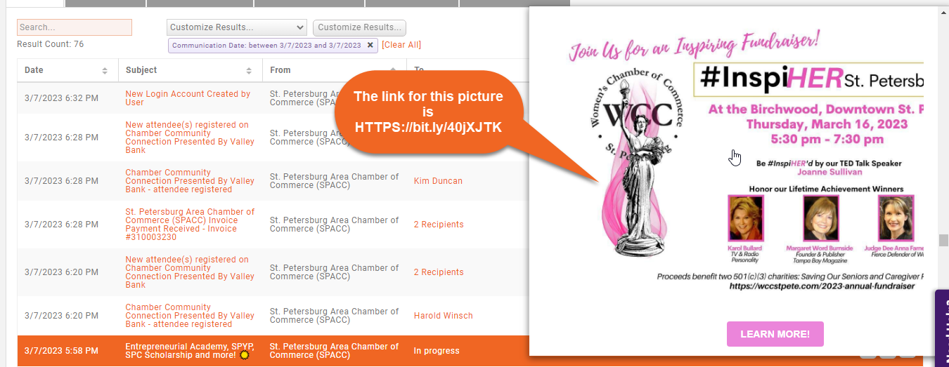 The overall size of the marketing email should not exceed 2000 pixels in length. I have put an orange border around your Enewsletter 2023 in the following screenshot which would be within the 2000 Pixels limit to