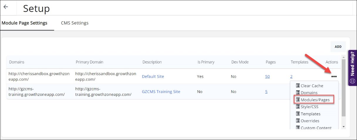 Module Page Settings allows you to add the store to your website.