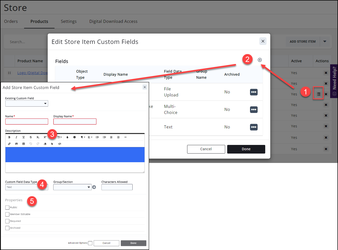 - Add Custom Fields for the type of customization you are allowing for each product. For example, the customized options for a coffee mug may be different than a window sticker.