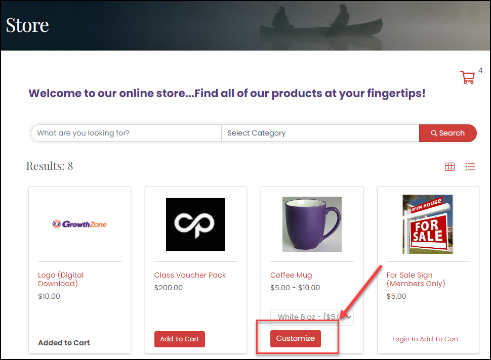 You can create a custom product listing in the GrowthZone Store module to sell custom products to your members.