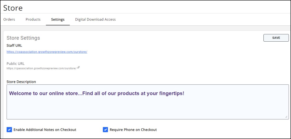 There are Store General Settings and Store Page for Website settings that are available within the Store.