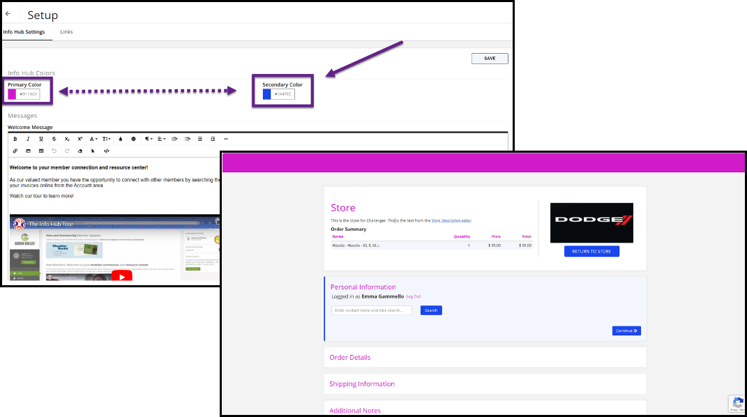 An updated Store checkout form that is more modern and unified is available through GrowthZone. The Store checkout page will use an association's logo and color branding that is set in the Info Hub.