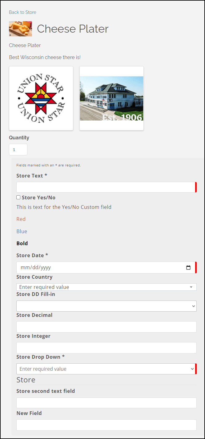 At checkout, customers will be able to complete Store Custom Fields.