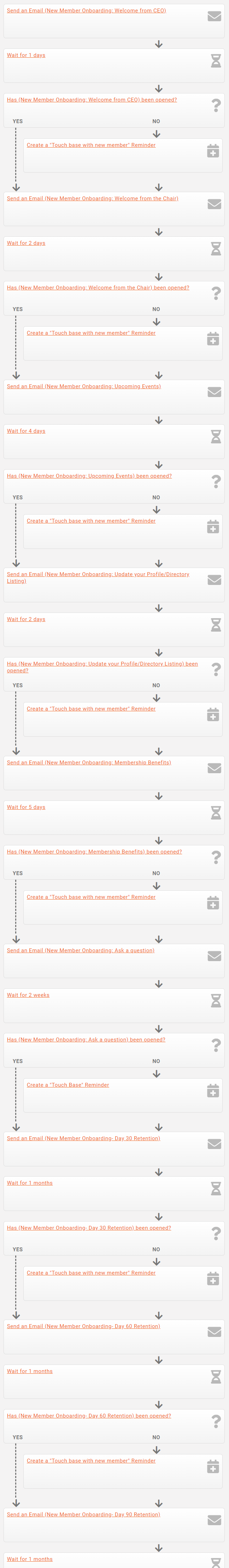 These examples were built out using materials from a GrowthZone/Frank Kenny webinar, "Automated Member Recruitment & Retention".