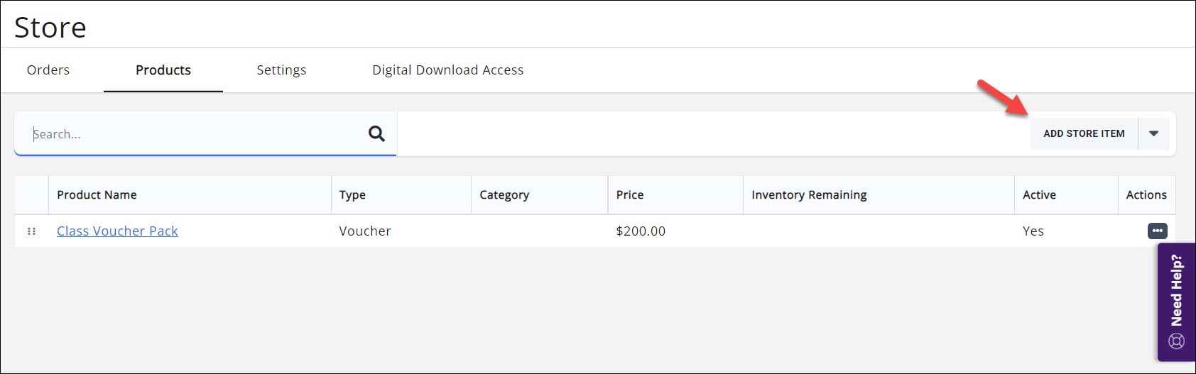 - In the Store module, click the Products tab. A list of all products currently set up in your system will be displayed.