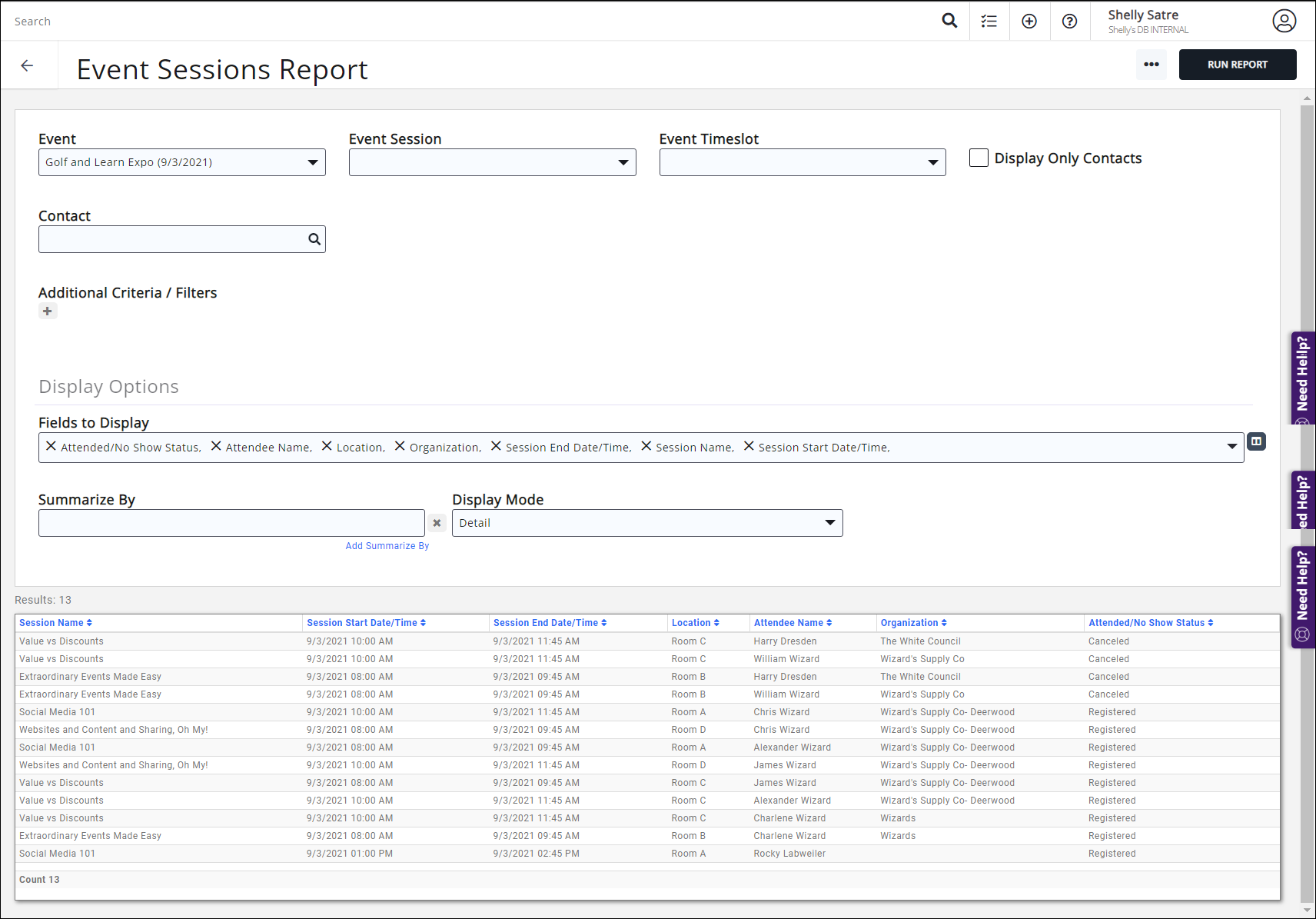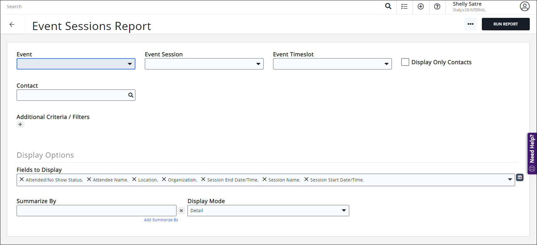 - Event Session: Select the desired session. If no selection is made, all sessions will be included in report results.