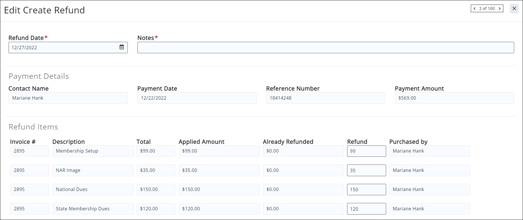 - Refund Date - The date will default to today's date. You may change it if necessary.