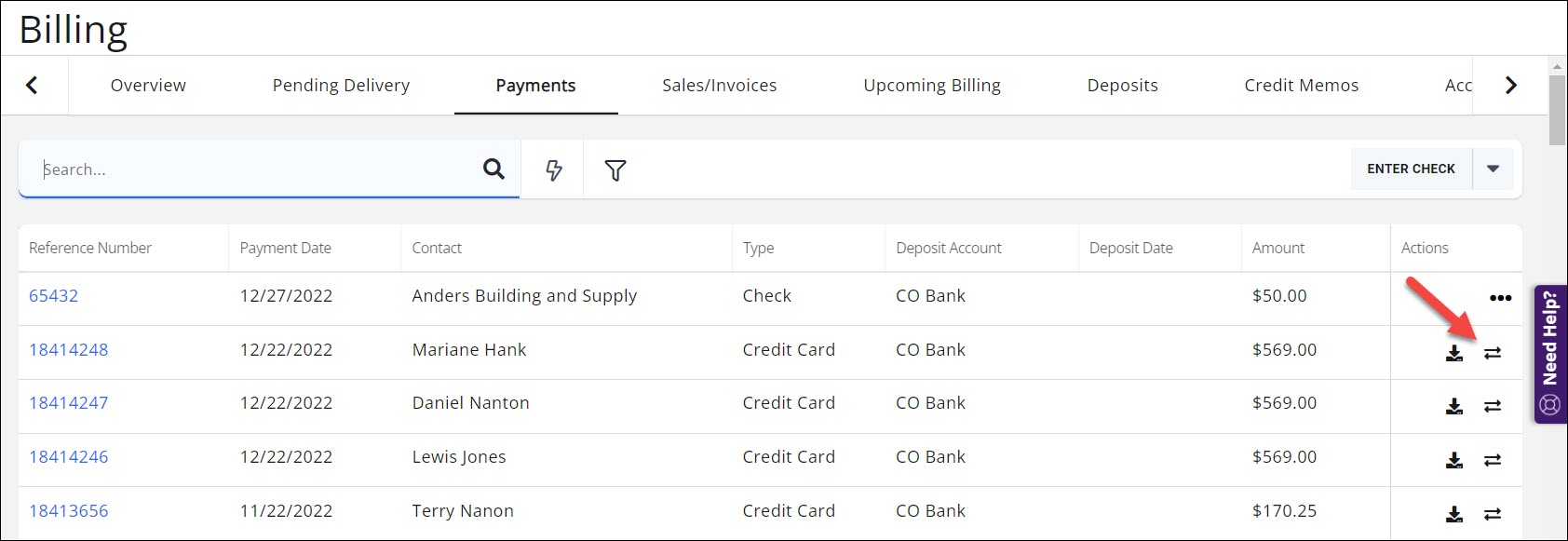 icon in the Actions column for the payment to which you wish to apply a partial payment. NOTE: If the icon is not displayed, this indicates that a refund has already been created for the item.