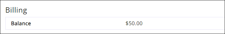 - Billing will display any open balances for the contact. NOTE: This section will only be displayed if the contact has an open balance.