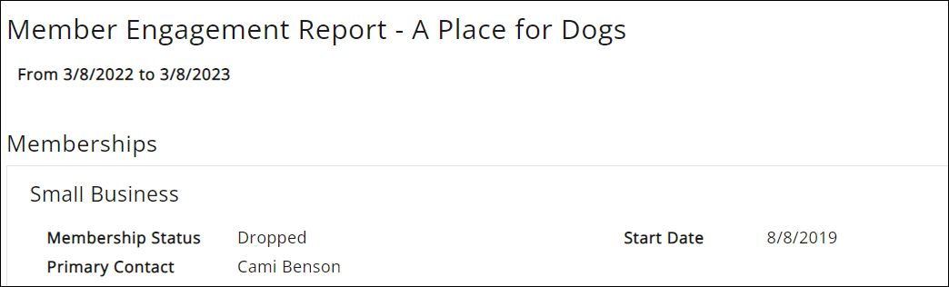 - Memberships: This section will provide information about the contact's membership status, membership type, primary contact, expiration and the start date of the membership. If the contact has multiple memberships, all will be displayed.