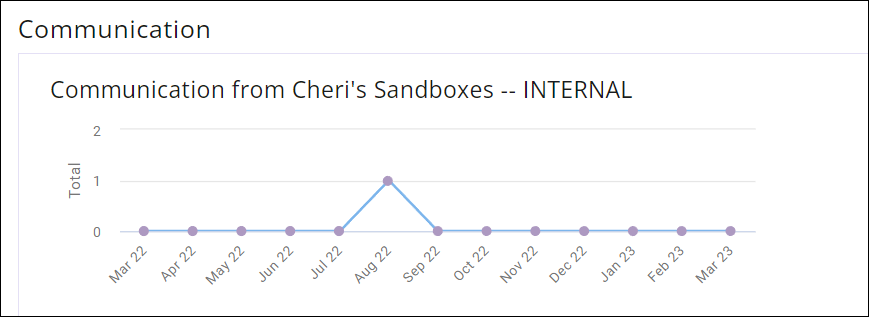 - The Communications section, shows you graphically your communications with this member. As stated in the title this displays the quantity of emails sent specifically from your tenant record email address. To locate your tenant record, look at the Contacts list; search for the tenant record name; the tenant record has the 'flag' next to it. Emails from others are not counted in these totals - only those from the tenant record. Look at the Communication tab to see the specific emails included in the count.