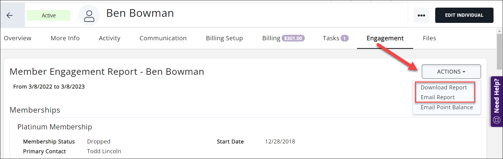 To keep your members up to date, you can easily download the information or send them an email. Click the Actions button to select Download Report or Email Report.