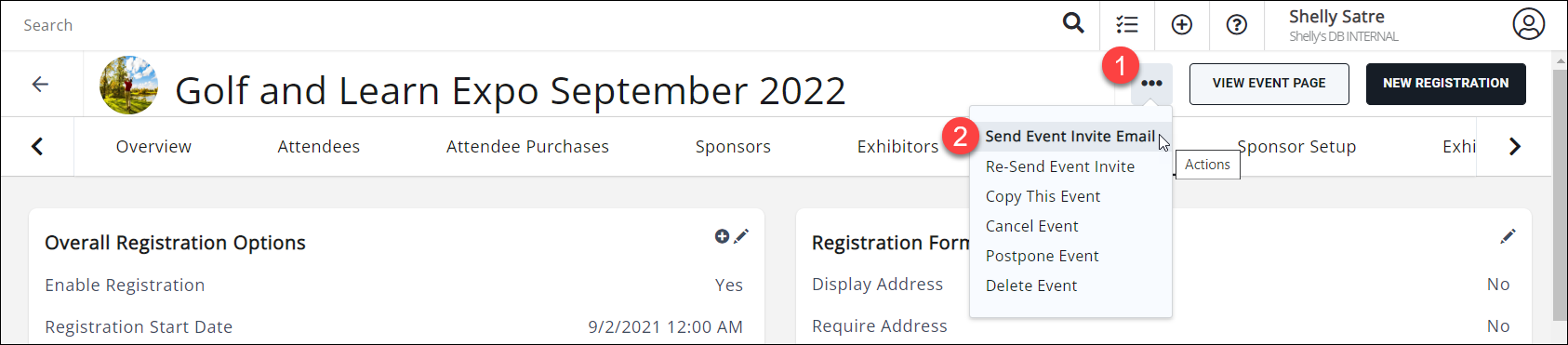 - Select Send Event Invite Email.