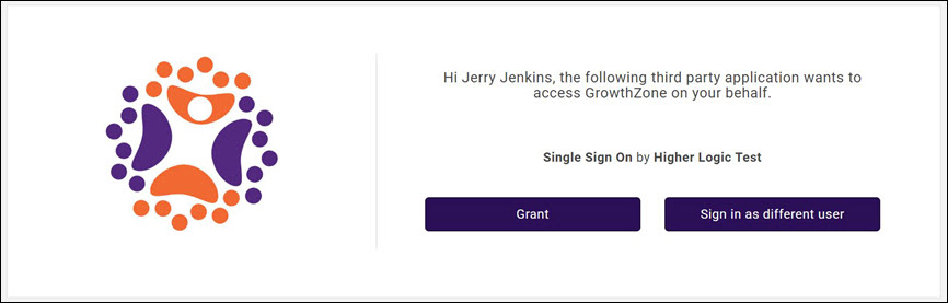 The first time a member clicks the Community (or the terminology you have configured) link in the Info Hub, an authorization page will be displayed. The member must click the Grant button to access Higher Logic. The next time the member accesses Higher Logic, the member will automatically be logged in.