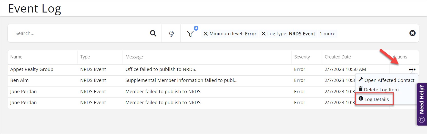 To view details click the and choose Log Details.