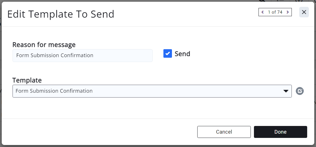 - You can edit the template used for the automated message by clicking the gray edit icon