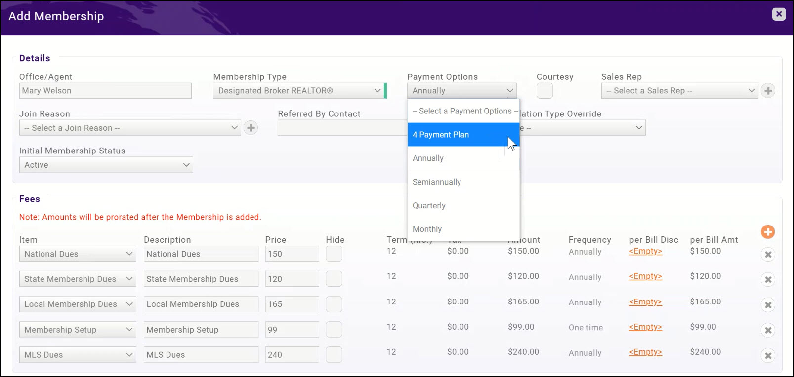 Assign Membership with Payment Plan to an Agent