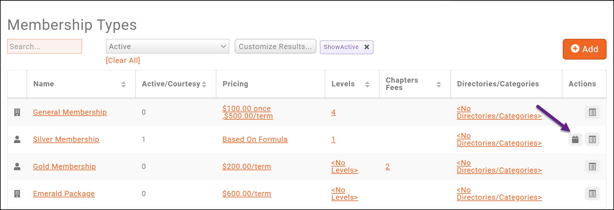 - Filter the list to the desired membership type(s) by clicking the Customize Results option.