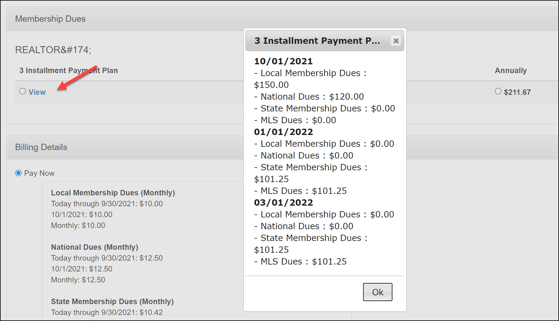 - Existing Members: Prior to renewal, during a set eligibility period, existing members can sign up for a special payment plan.