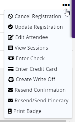 - From the drop-down menu on the far-right of the attendee you will have differing options depending on if the invoice is paid or not.