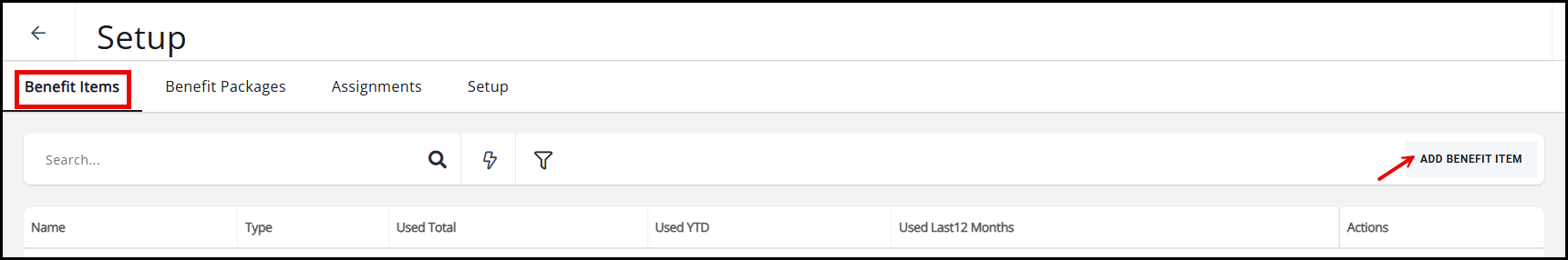 - On the Benefit Items tab click Add Benefit Item.