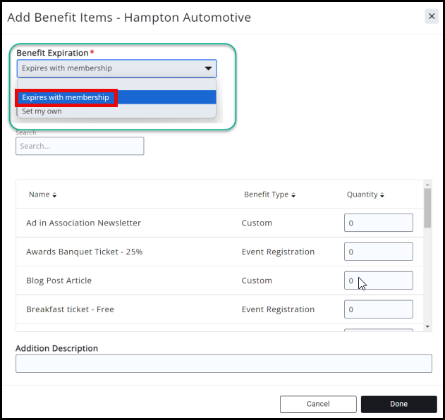 - When assigning benefits, you can specify your own expiration date with this option. Instead of having to tie benefits to a membership, you can now have the GZ system inherit the expiration of the membership.