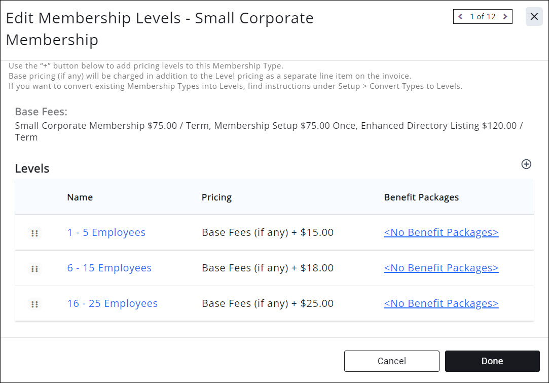 Assign Benefit Packages to Membership Types or Membership Type Levels