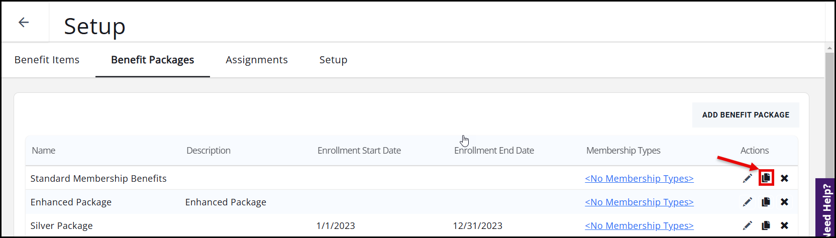Benefit packages allow you to group together a set of benefit items. You will then assign these packages to membership types so that your members are assigned benefits based on their membership. We recommend that you create a benefit package each year. You can easily do so by using the copy function.