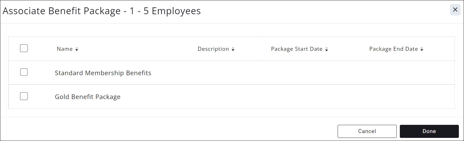 On the Associate Benefit Package screen, click the checkbox for the package(s) you want to assign to this membership.