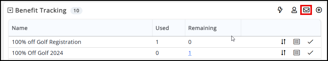 Over time you will want to notify benefit owners of the benefits that their membership provided, how many they have used and what is remaining. This can be done individually or in bulk.